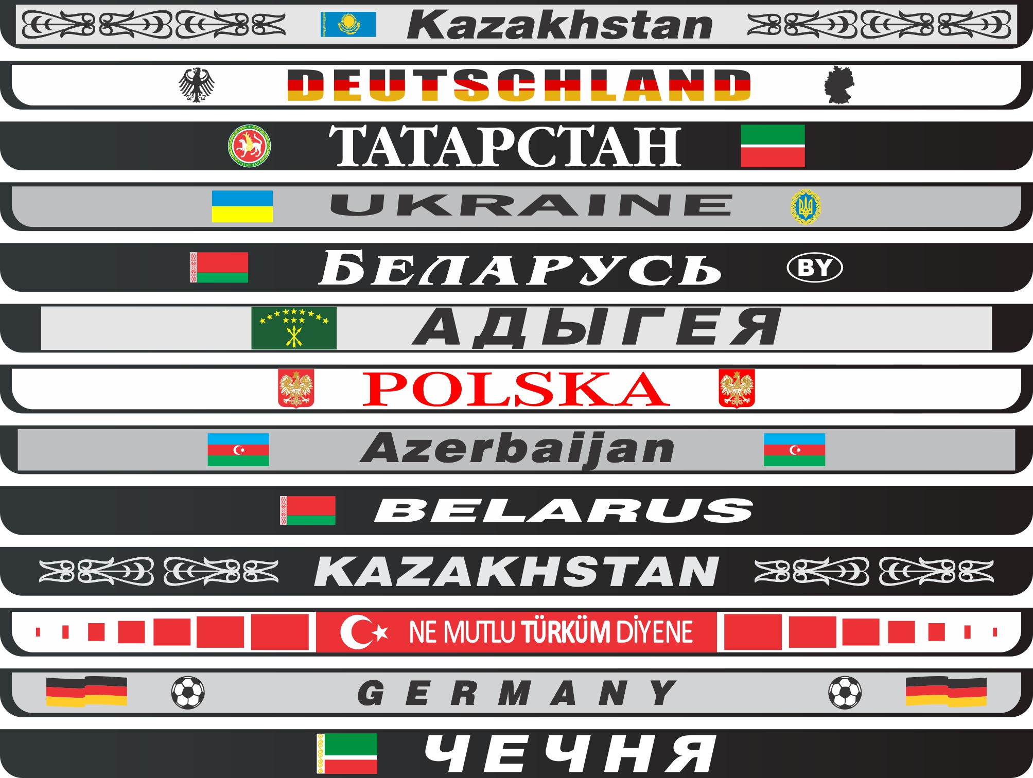 Rėmeliai su šilkografine spauda - įvairių šalių pavadinimai