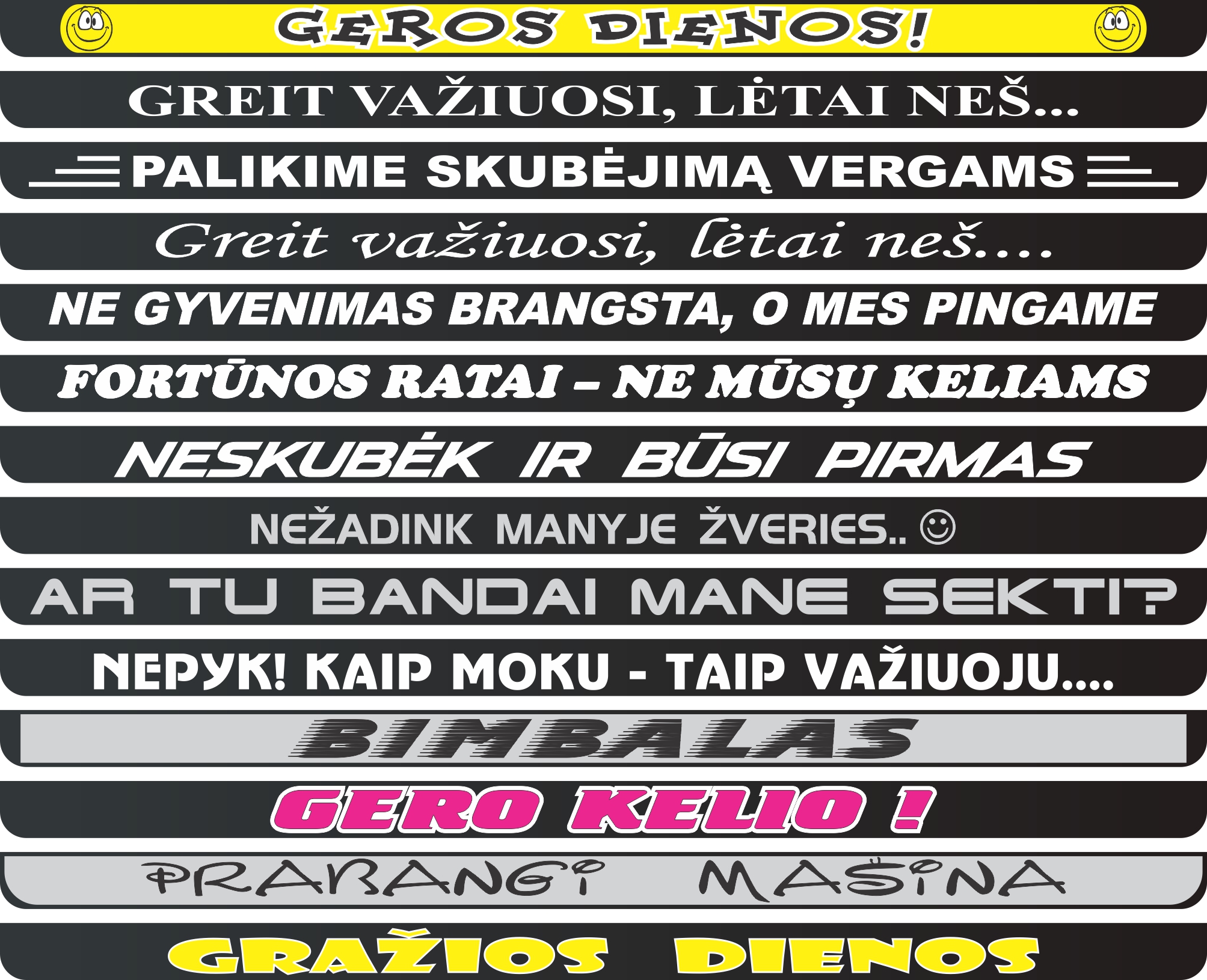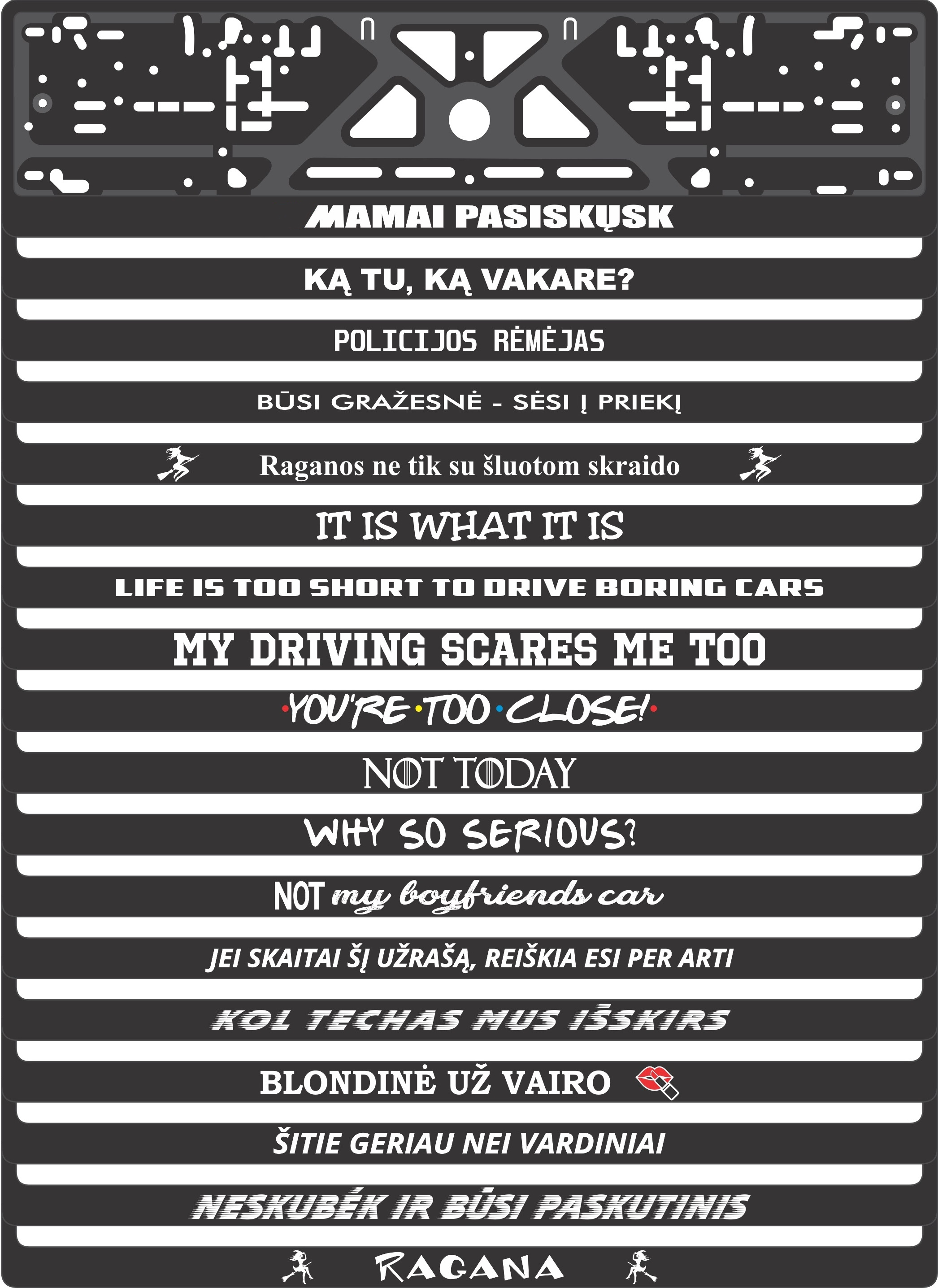 Valstybinių numerių rėmeliai su šilkografine spauda - Įvairūs šūkiai
